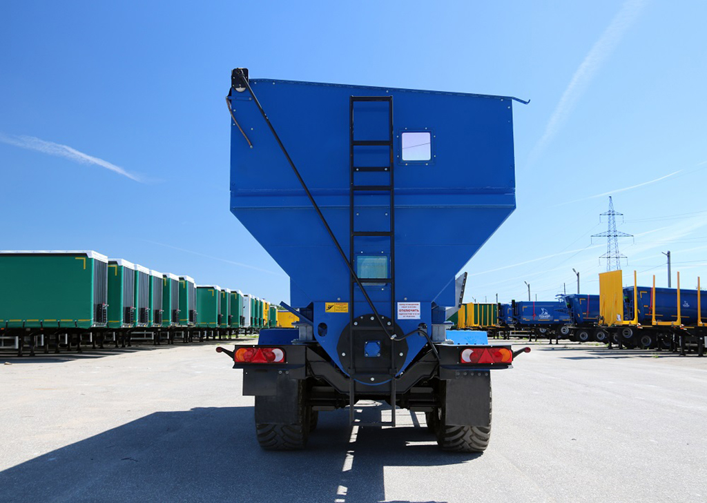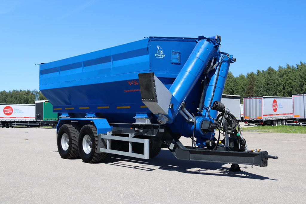 Бункер-перегрузчик зерна. Объём кузова 22 куб.м. Оборудован системой зачистных лючков, тентом с боковой скруткой, системой гидравлических заслонок горизонтального шнека, съемными надставными бортами для удобства транспортировки на трале.