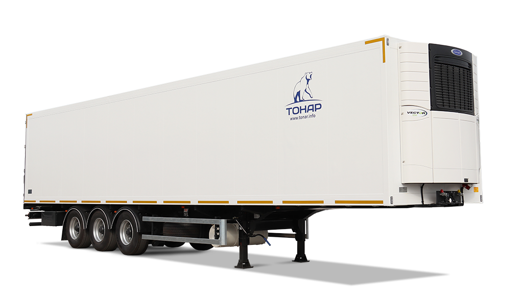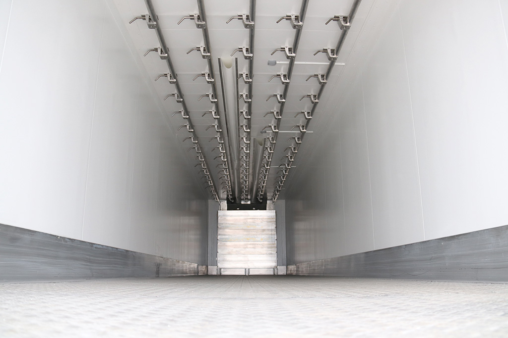 Кузов полуприцепа Тонар-9746Т усиленный для транспортировки мясных туш в повешенном состоянии.