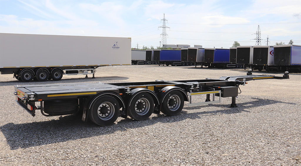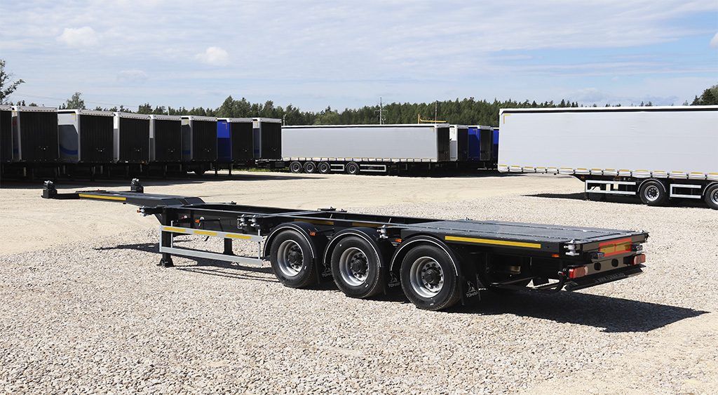 Трехосный полуприцеп-контейнеровоз для перевозки контейнеров 1х20`,2х20`,1х30`, 1х40`,1х40`HQ