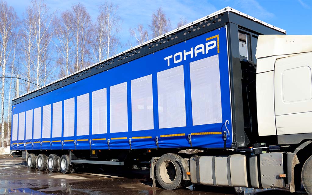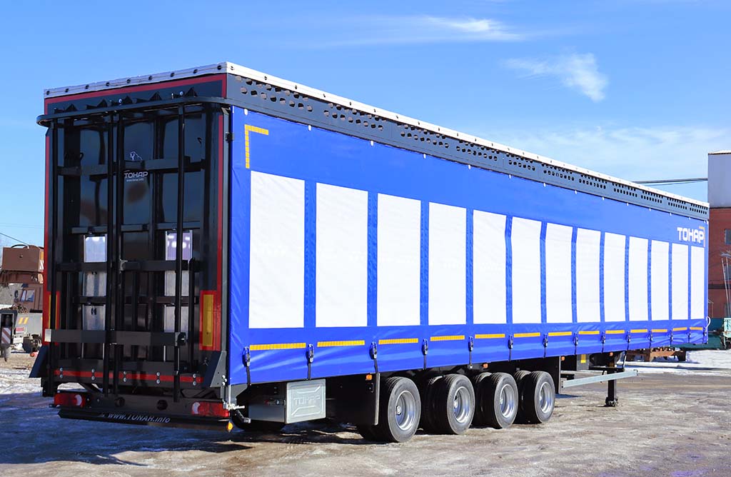 • Удобный шторный механизм и отсутствие стоек позволяют быстро разгрузить и загрузить полуприцеп;