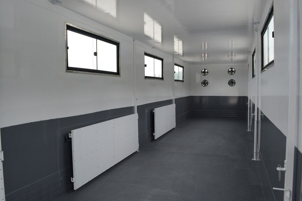 - Полуприцеп обеспечивает качественную доставку молодого поголовья свиней в любую погоду в течение всего года.